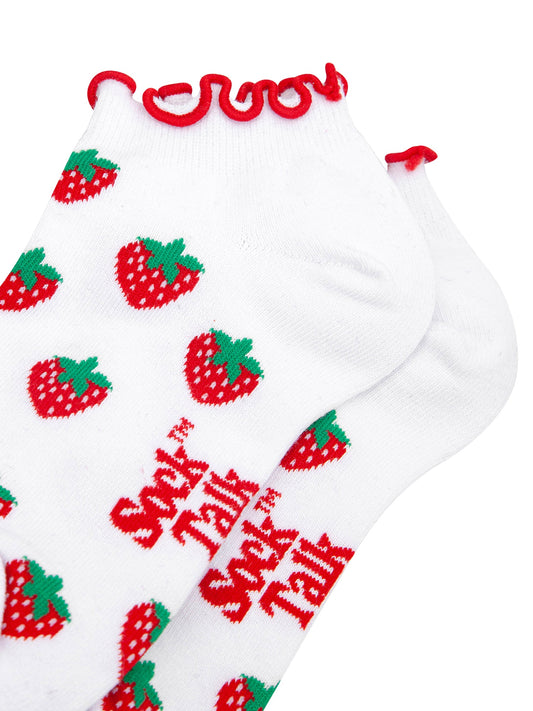Strawberry Frilled Cuff Combed Cotton Trainer Socks in White