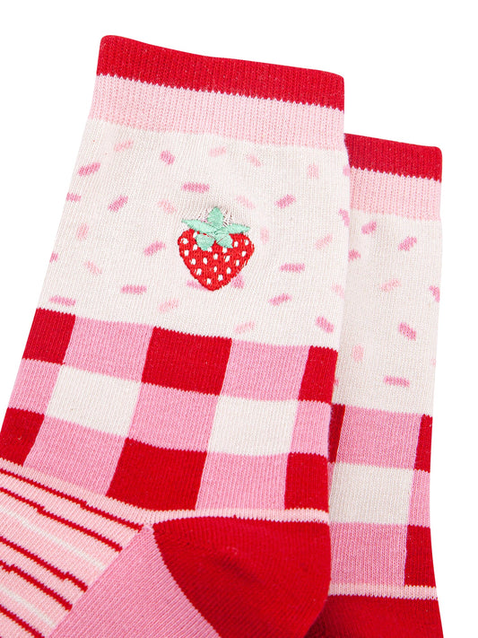 Embroidered Strawberry Combed Cotton Socks in Pink