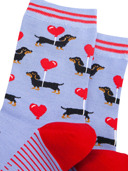 Sausage Dogs Heart Balloon Bamboo Socks in Blue