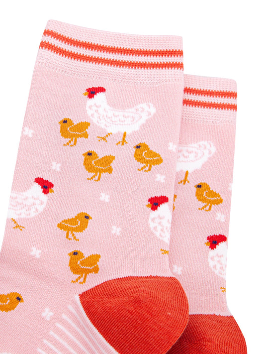 Hens and Chicks Bamboo Socks in Pink