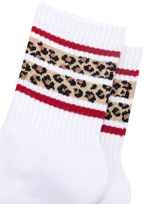 Leopard Print Striped Combed Cotton Sports Socks in White