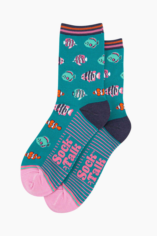Women's Bamboo Socks - Aqua, Tropical Fish