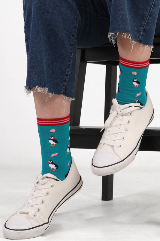 Women's Puffin and Sea Shell Bamboo Socks