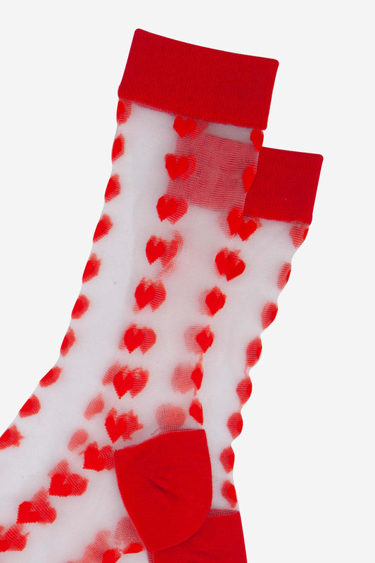 Love Heart Cotton Sheer Pop Socks in Red