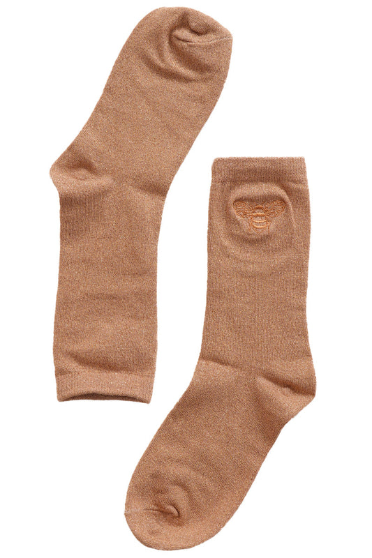 Womens Glitter Socks Embroidered Bumble Bee Socks Sparkly Shimmer Gold