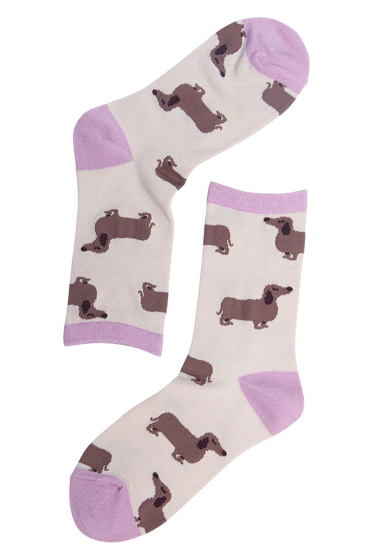 Womens Bamboo Dog Socks Dachshund Sausage Dog Socks Cream Pink