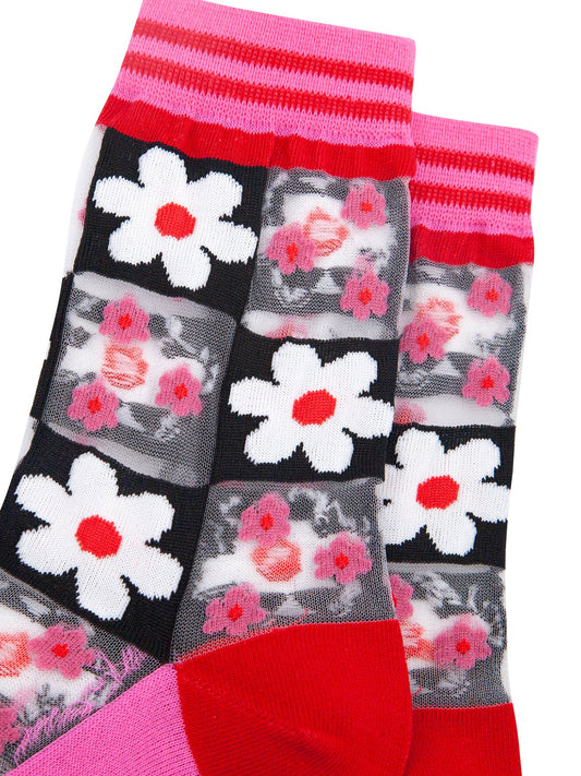 Daisy Checkerboard Combed Cotton Sheer Pop Socks in Pink