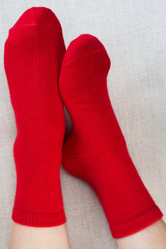 Women's Cashmere Socks Ankle Socks- Red, Cashmere