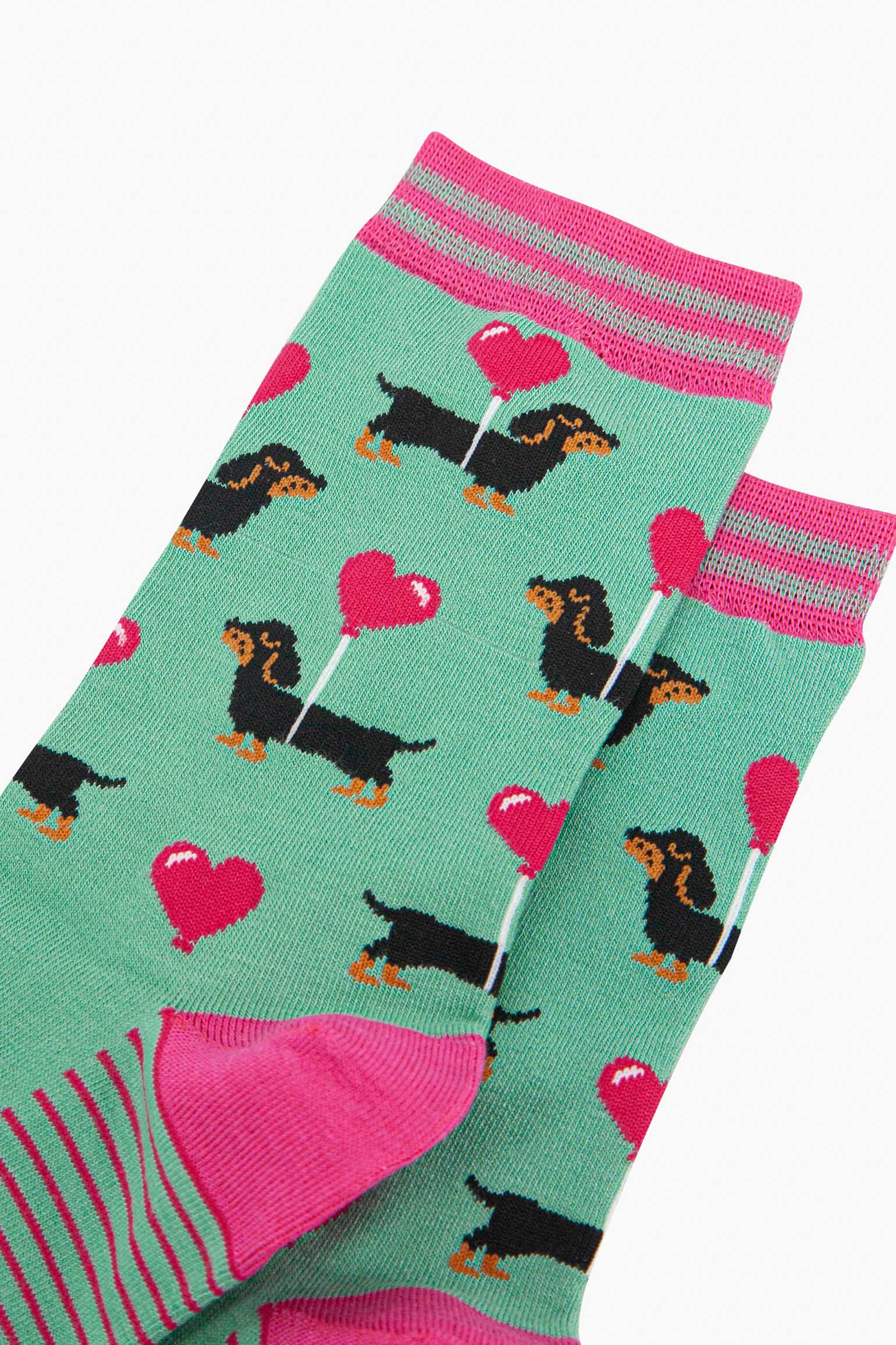 Women's Bamboo Socks - Mint, Sausage Dog with Loveheart Balloon