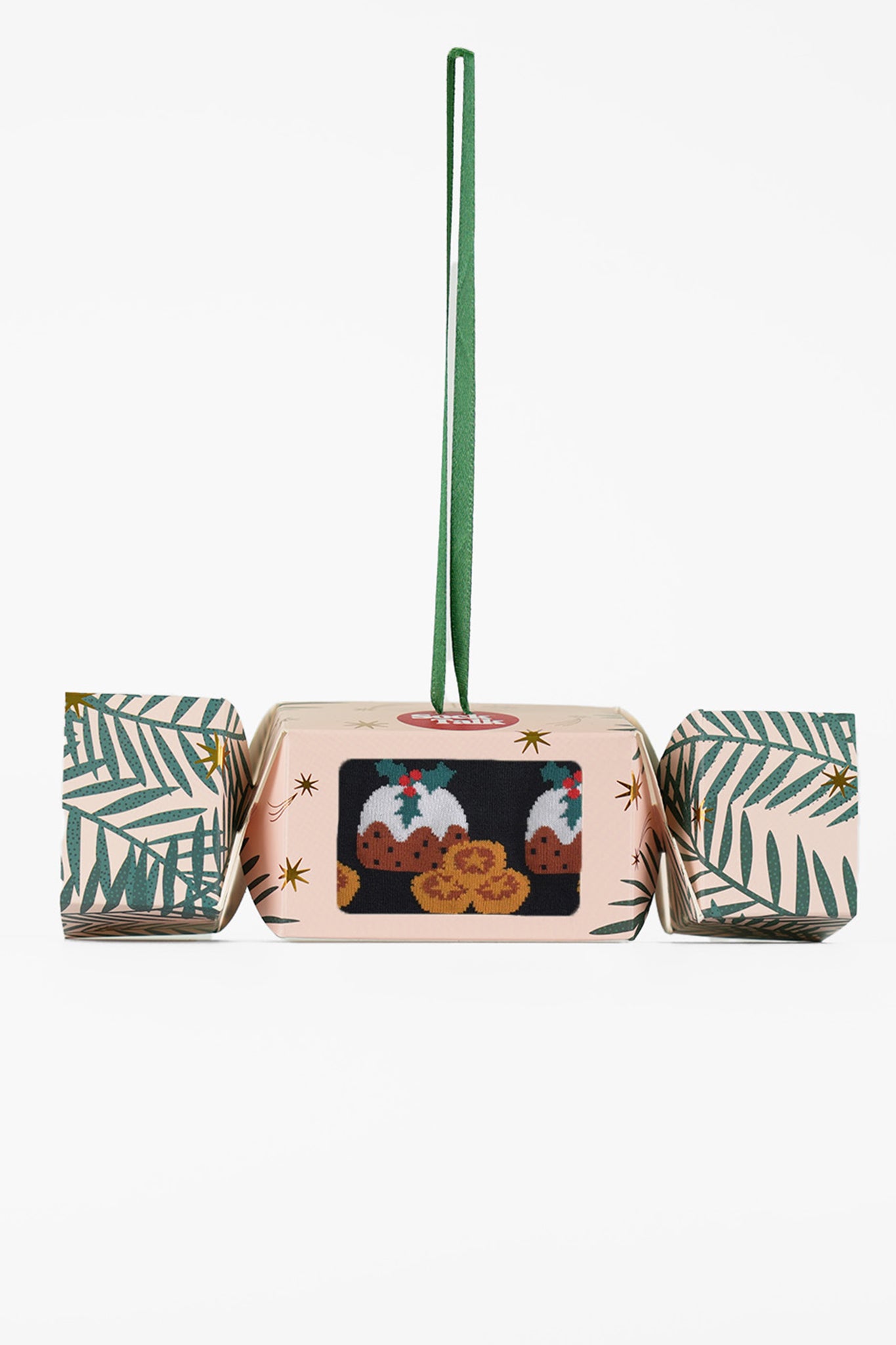 Men's Bamboo Crew Socks Christmas Cracker Gift Box - Black/Green, Christmas Pudding