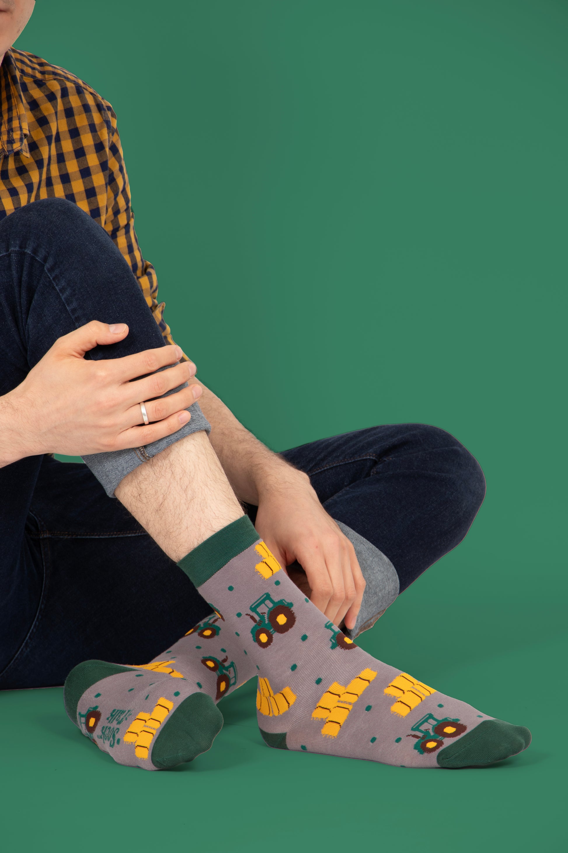 Mens Bamboo Socks Green Tractor Novelty Farmer Sock