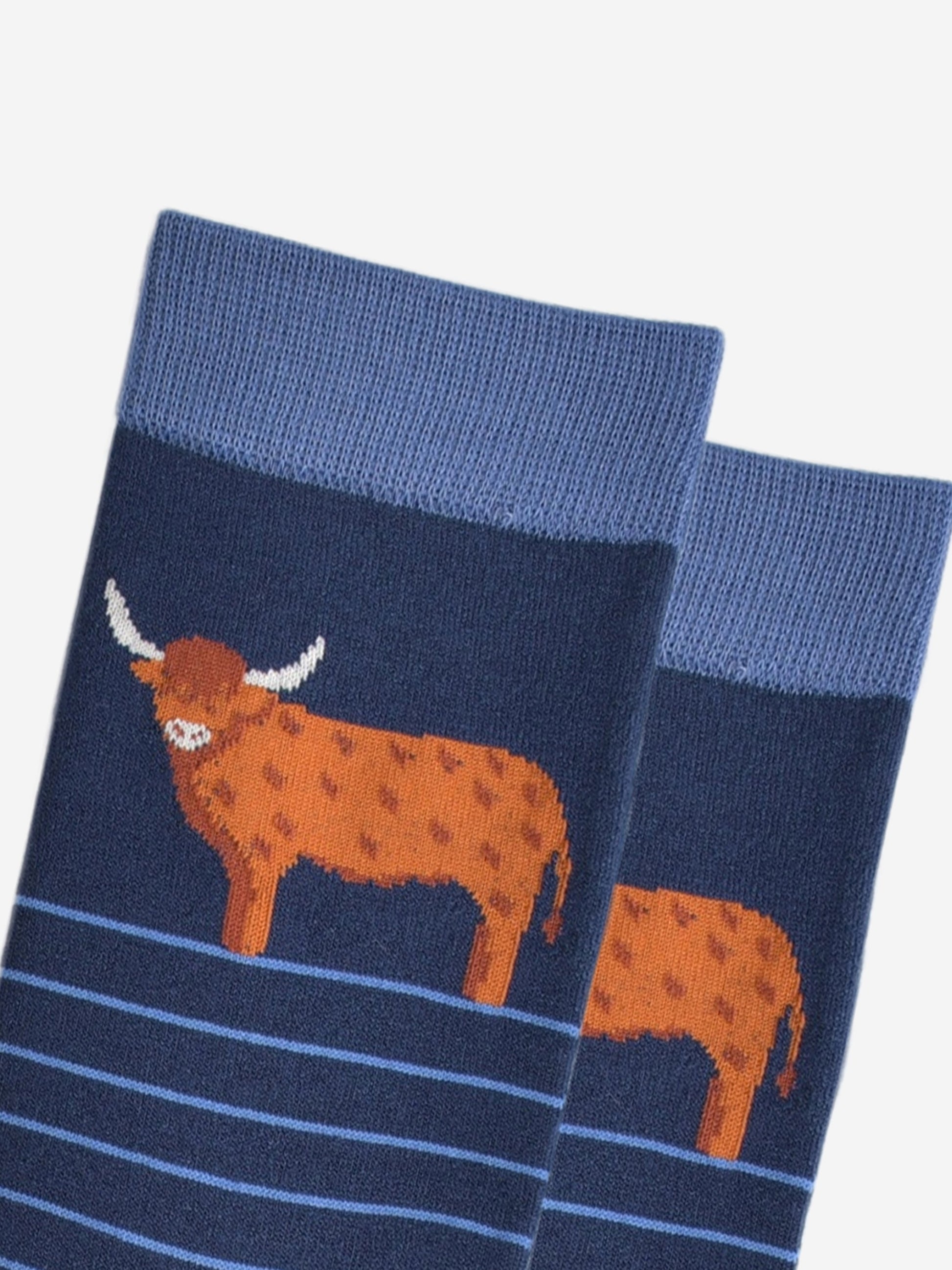 Highland Cow Striped Bamboo Socks in Navy Blue