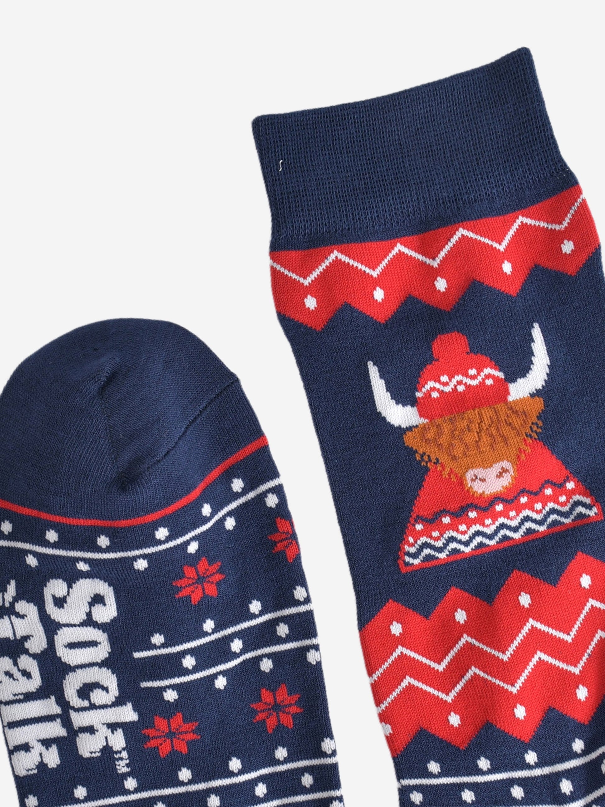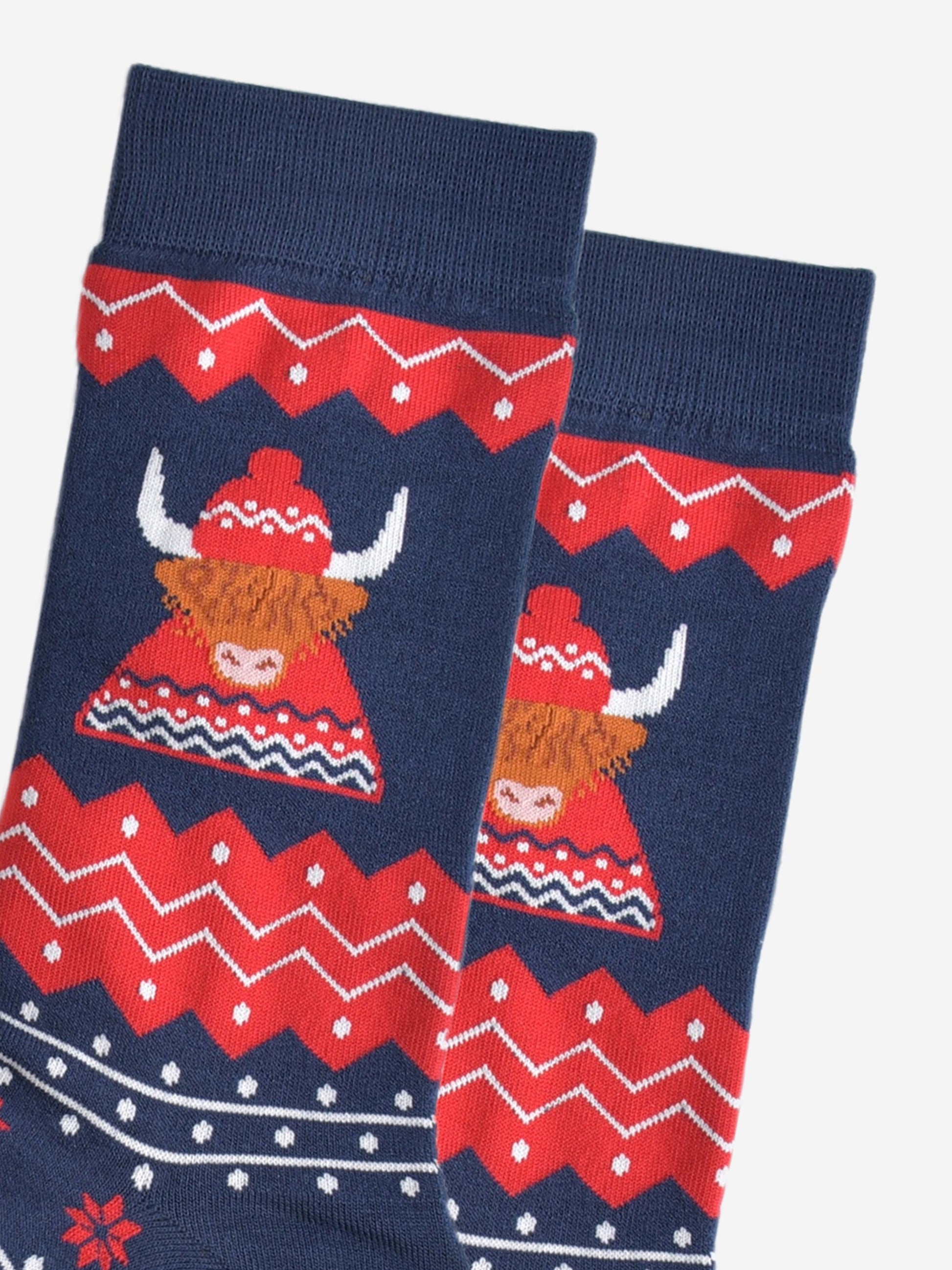 Men's Bamboo Socks - Red/Navy Blue, Highland Cow Hat and Jumper