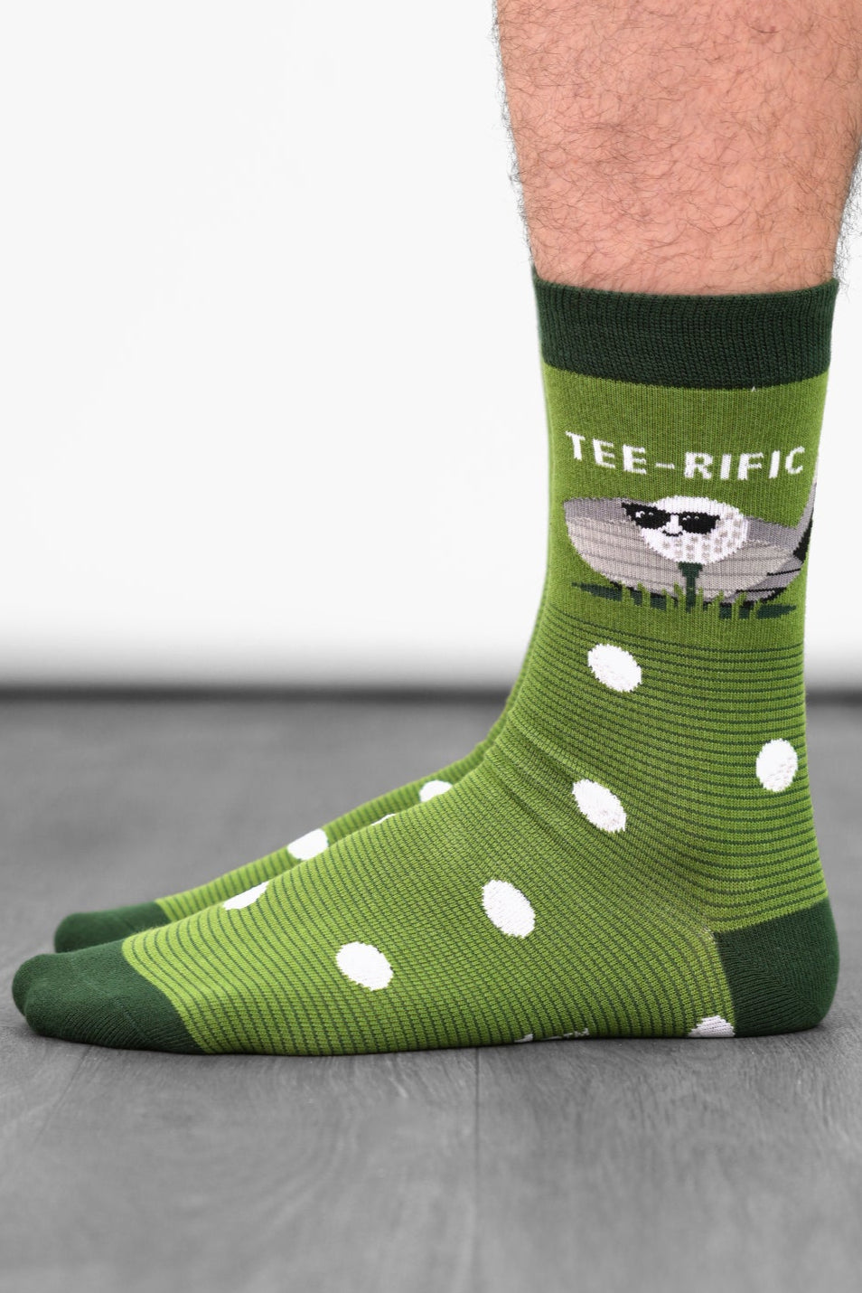 Men's Combed Cotton Crew Socks- Green, Teerific Golf
