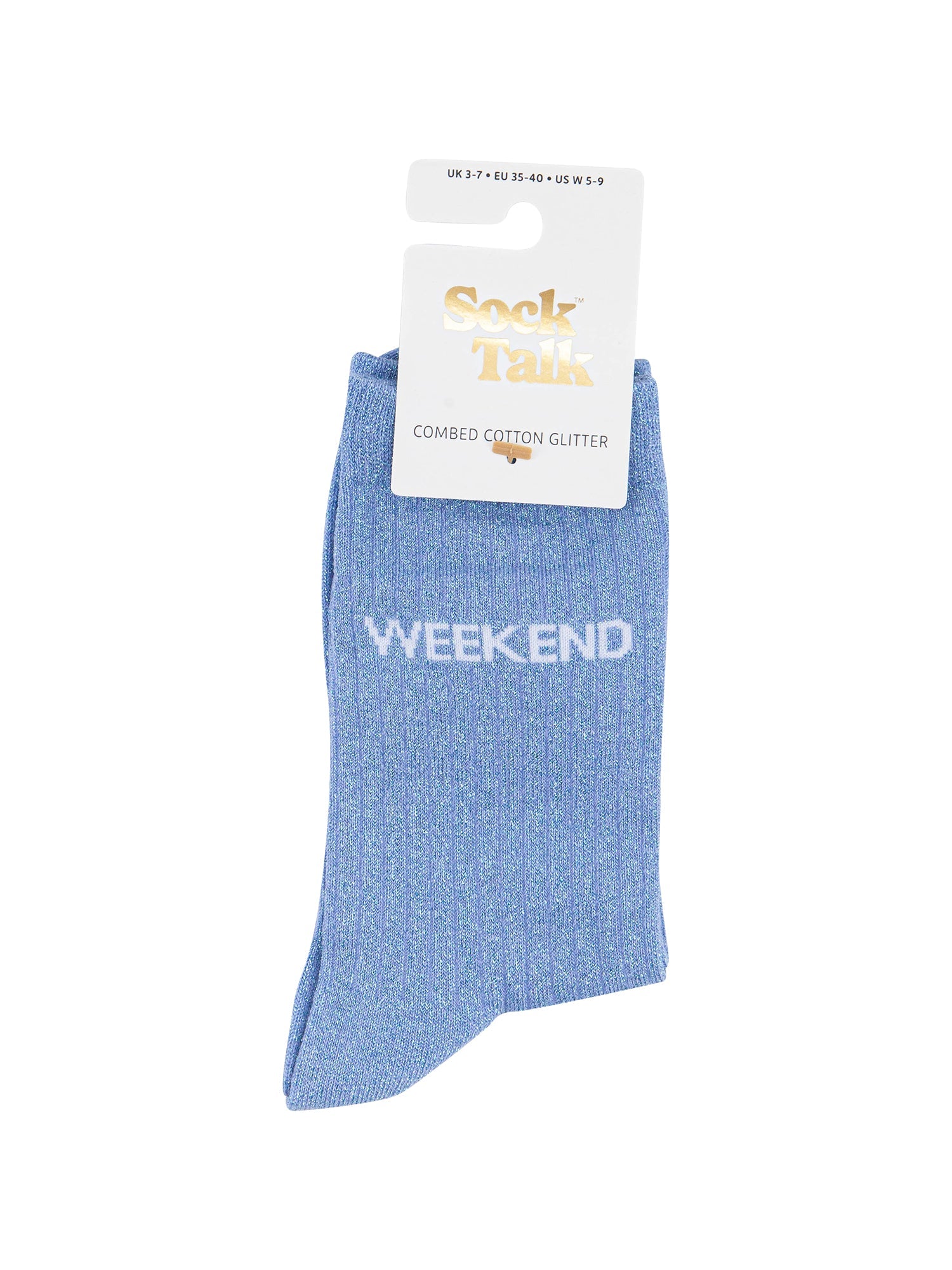 Weekend Combed Cotton Glitter Socks in Light Blue
