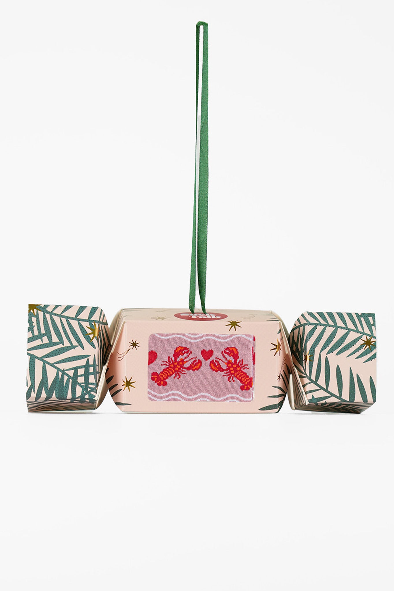 Women's Bamboo Ankle Socks Christmas Cracker Gift Box - Light Pink/Red, Lobsters with Love Hearts