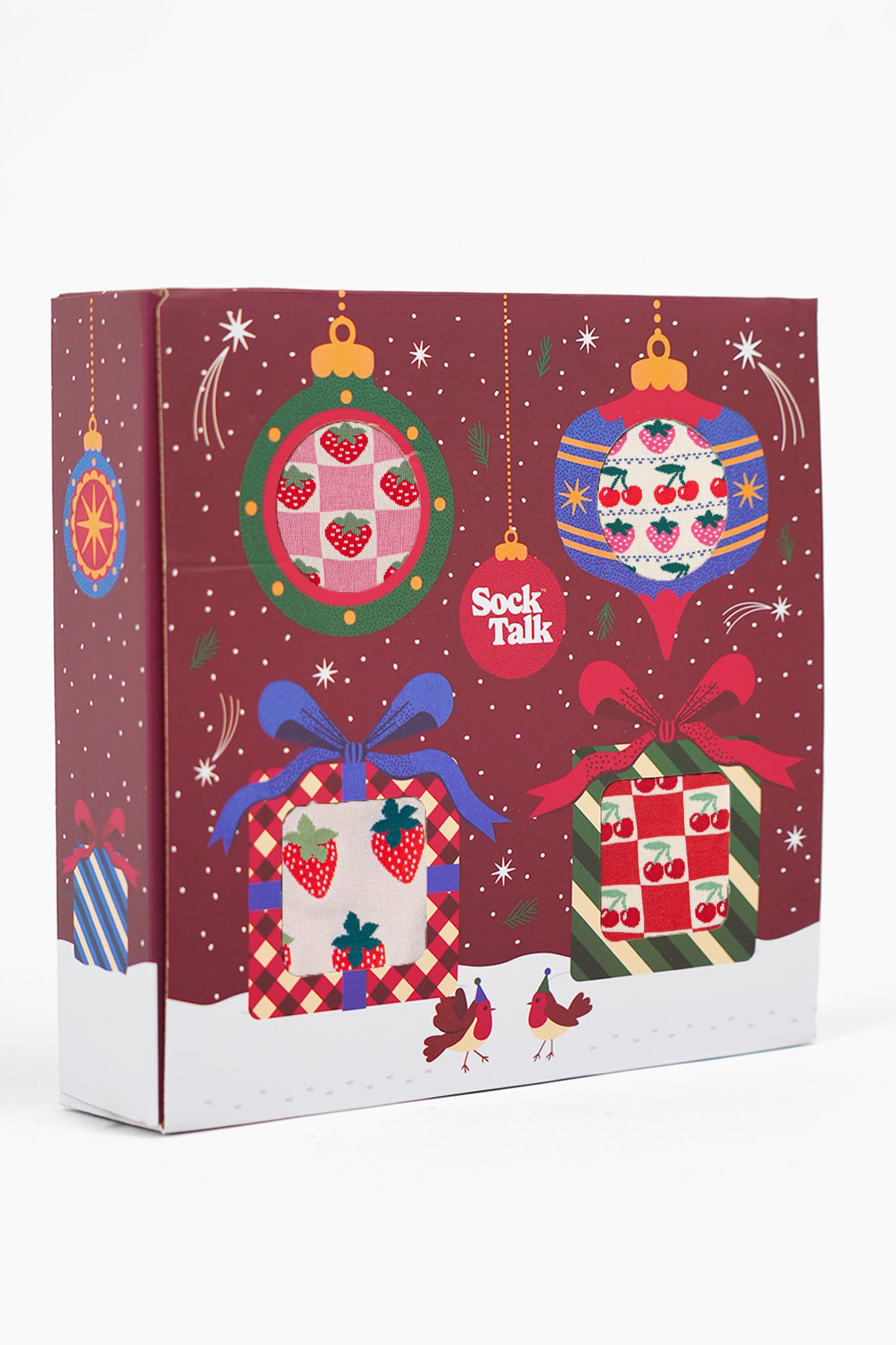Women's Bamboo Ankle Socks Festive Gift Set - Pink/Red, Fruits