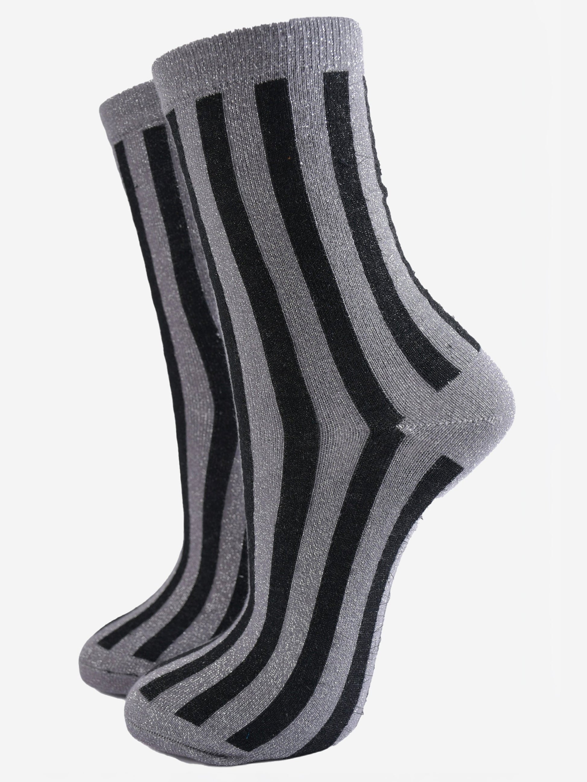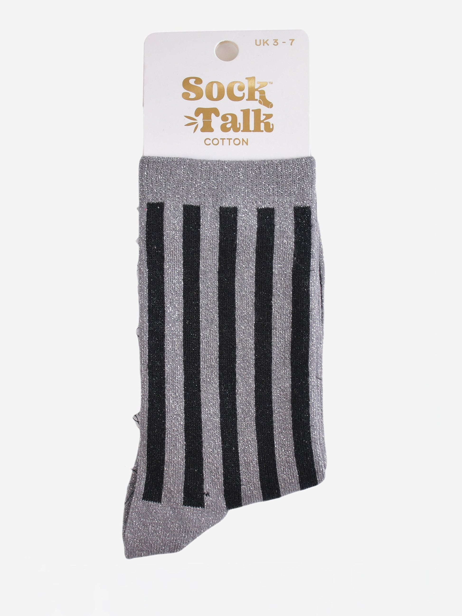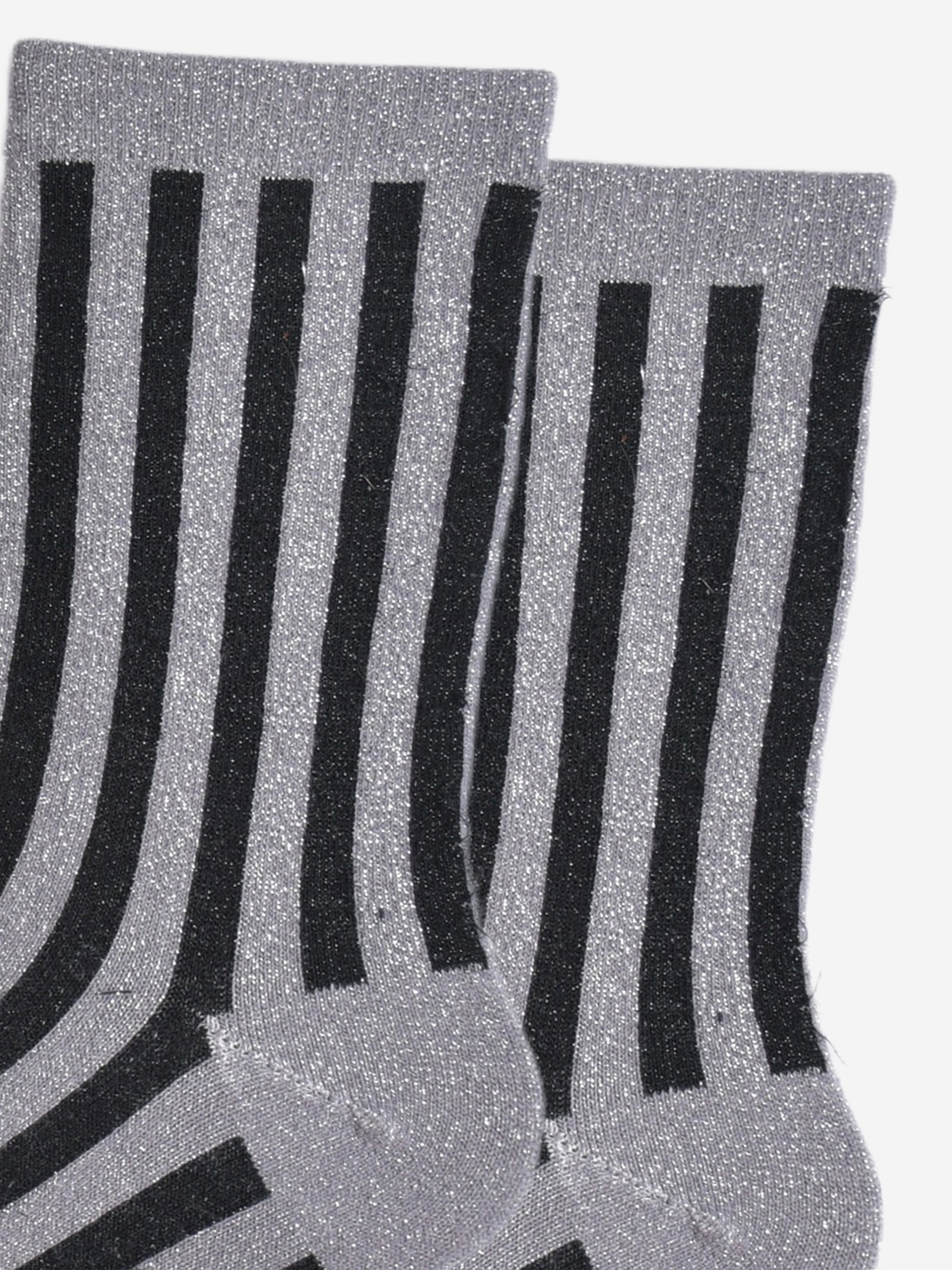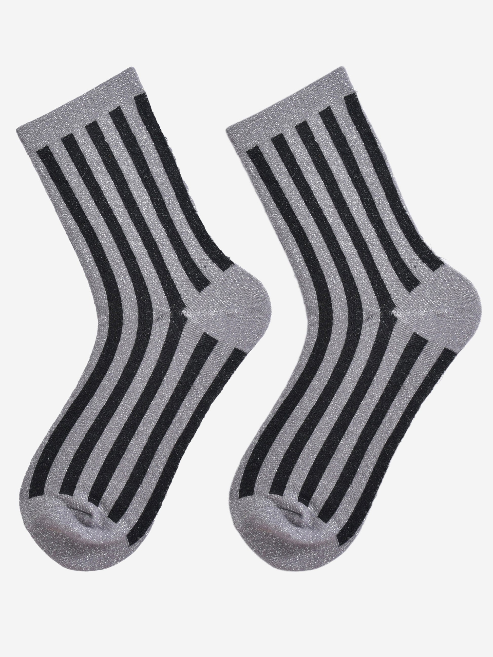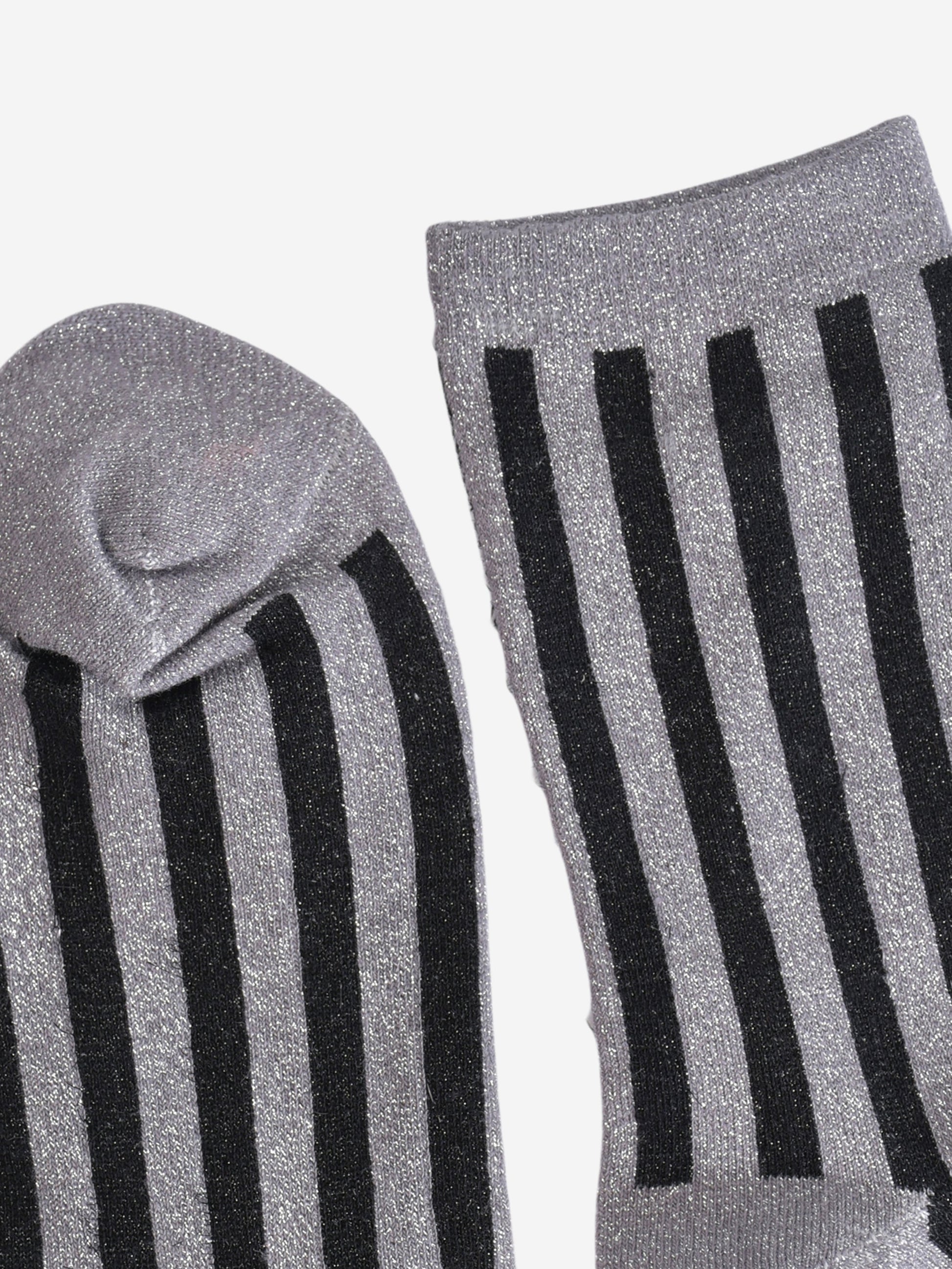 Vertical Stripe Cotton Glitter Socks in Grey/Black