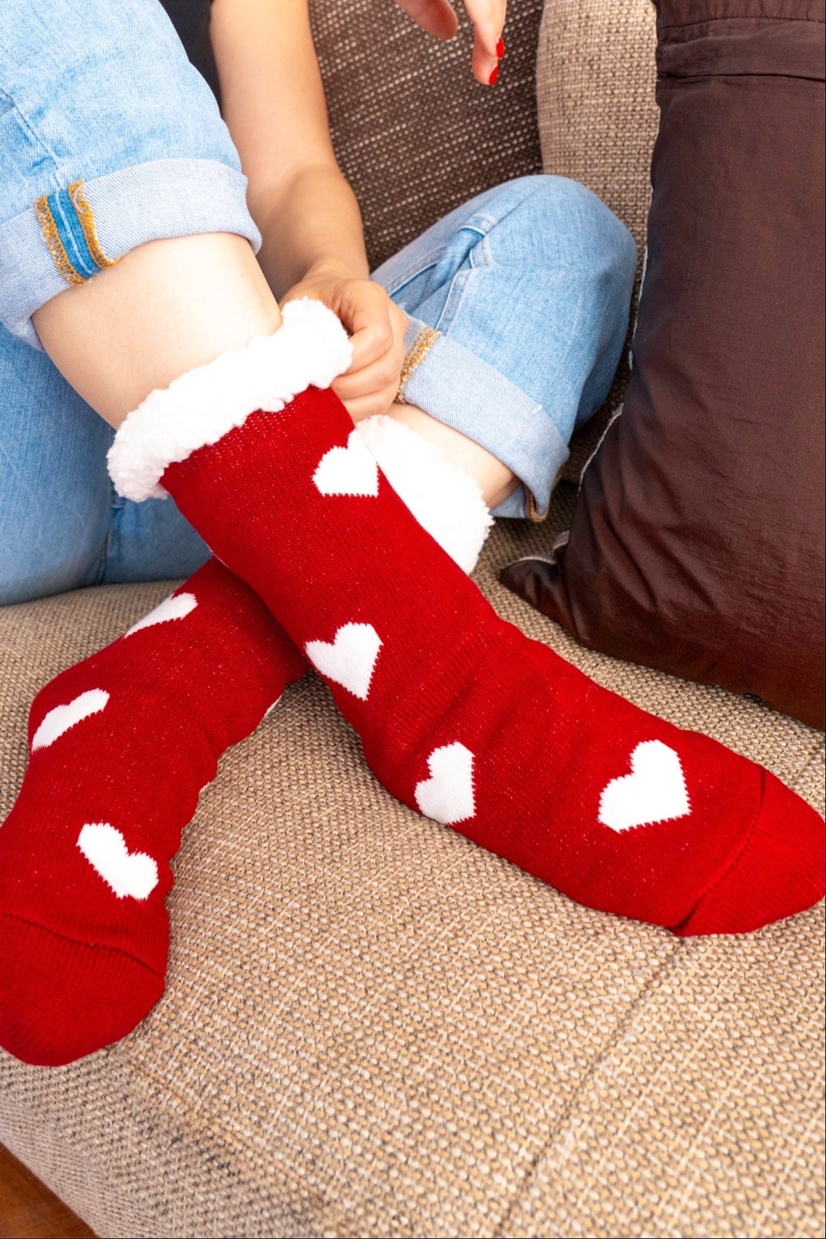 Cosy mid-calf slipper socks crafted from warm fleecy acrylic. Featuring a non-slip sole with grips, these comfortable loungewear socks are designed for wearing around the house.