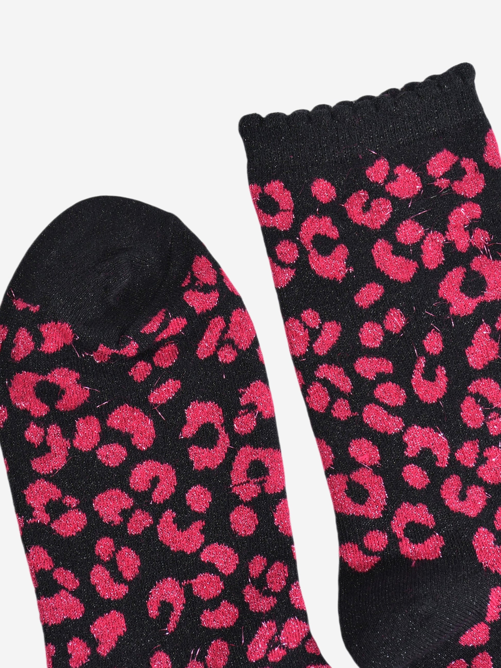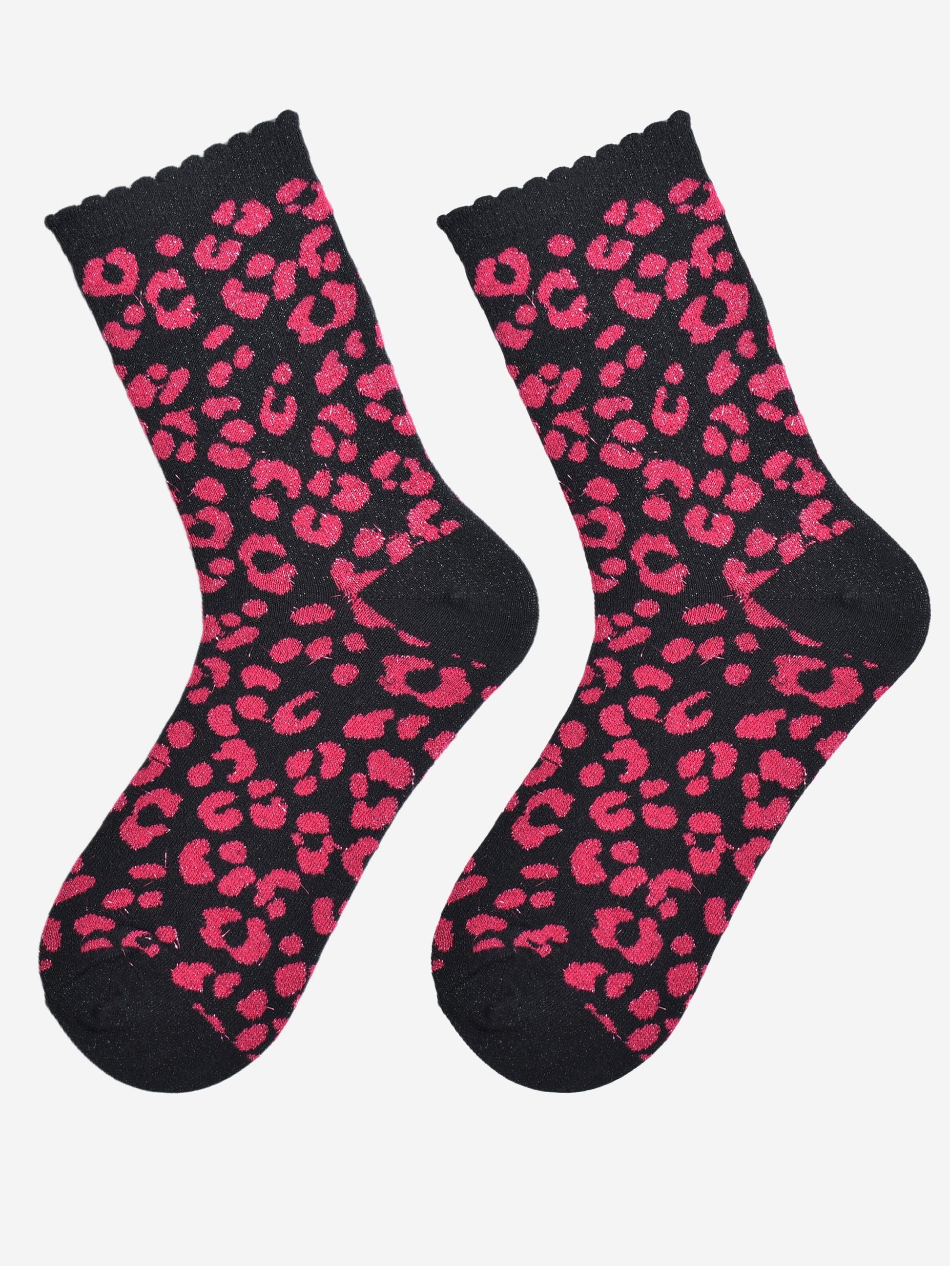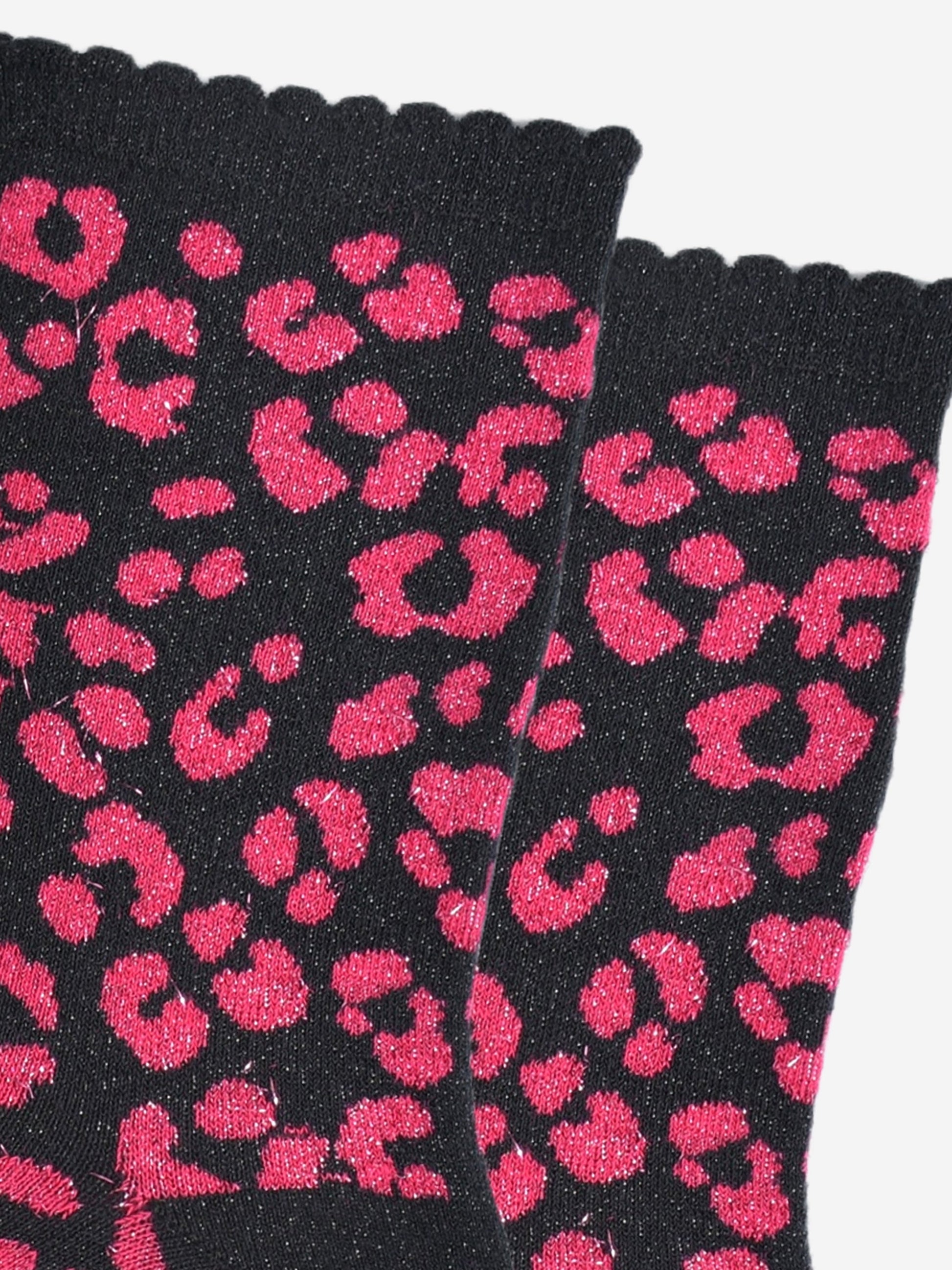 Leopard Print Cotton Glitter Socks in Pink/Black
