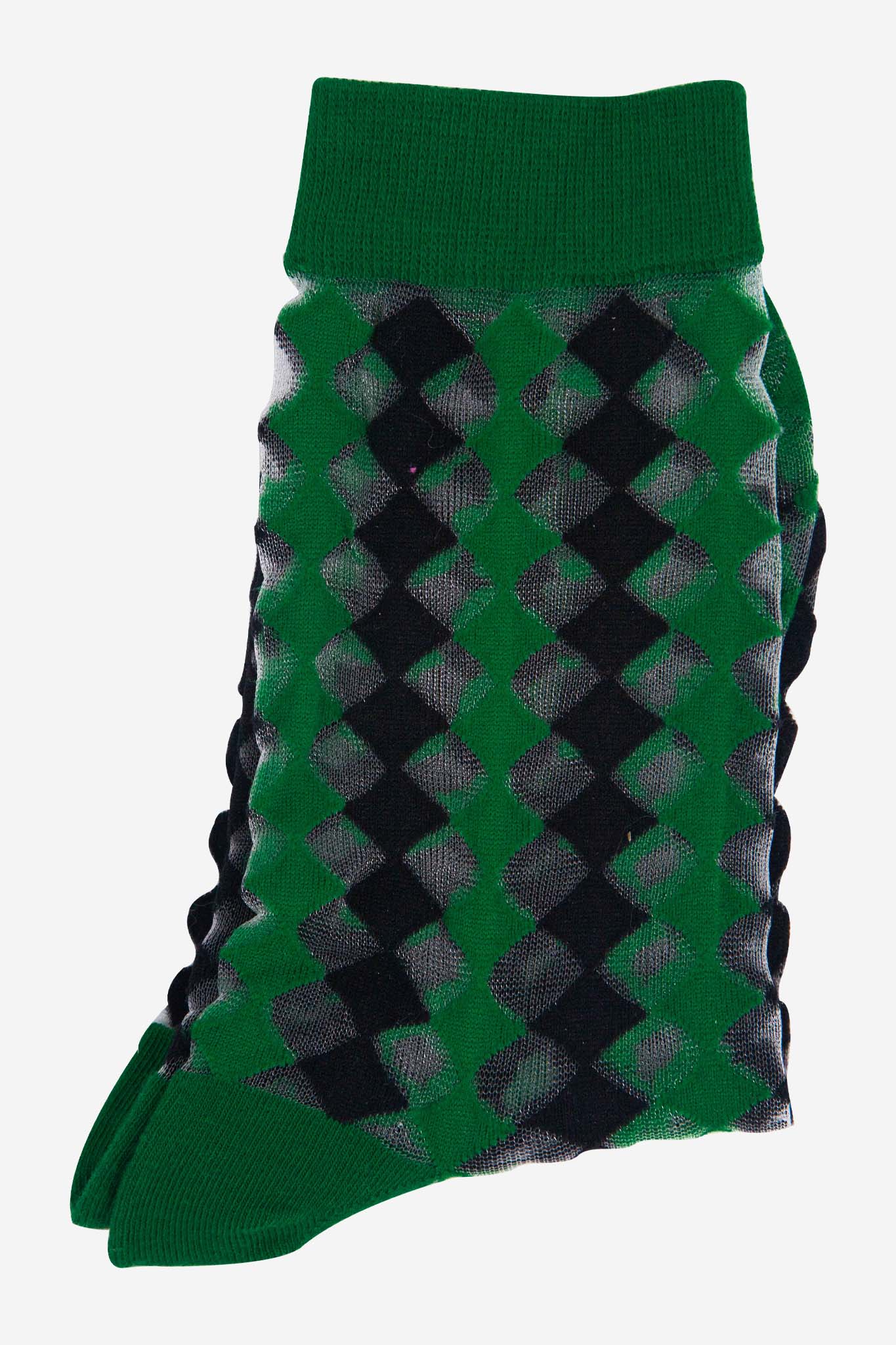 Women's Sheer Ankle Socks- Green/Black, Diamond